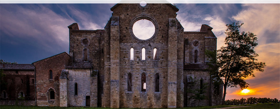 Impozantní monument v podobě bývalého cisterciáckého opatství v San Galganu, které se nachází v nedotčené toskánské krajině. Svatý Galgán (1148 – 81) byl odvážný, ale zhýralý mladý rytíř, jenž se později zřekl materiálního světa a obrátil se k Bohu. Když se pokusil zlomit meč o skálu jako symbol zavržení války, skála jej znenadání pohltila. Rytíř v tom viděl božské znamení. Vybudoval si na kopci nad opatstvím chýši, kde dnes stojí kaple Montesiepi. Papež Urban III. jej kanonizoval a prohlásil za vzor křesťanských rytířů.